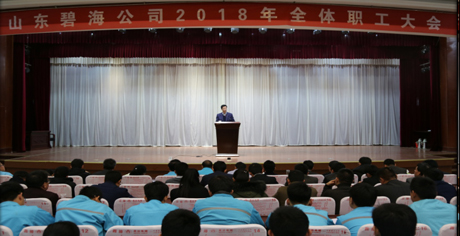 大會由市場總監(jiān)王立主持,會上山東碧海公司董事長厲善紅做了《2017年工作總結(jié)和2018年工作計劃》報告。