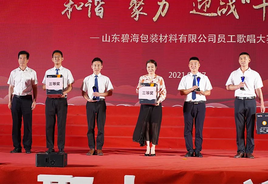 歌百年征程,頌碧海夢(mèng)想。為慶祝中國共產(chǎn)黨百年華誕,推動(dòng)企業(yè)文化發(fā)展,豐富職工文化生活,6月27日晚,公司慶祝中國共產(chǎn)黨成立100周年“和諧、聚力、迎戰(zhàn)‘十四五’”員工歌唱大賽在碧海廣場(chǎng)盛大舉行。厲善紅、厲善君、王立、孫欽志、孫學(xué)海、張玉欽、王愛蓮、陳永林等公司領(lǐng)導(dǎo)同1000余名碧海員工及其家屬一起觀看演出,公司還邀請(qǐng)臨沂市臨港經(jīng)濟(jì)開發(fā)區(qū)濱海示范園區(qū)的領(lǐng)導(dǎo)出席晚會(huì)。公司董事長(zhǎng)厲善紅上臺(tái)致辭,表達(dá)了對(duì)園區(qū)領(lǐng)導(dǎo)的敬意,對(duì)現(xiàn)場(chǎng)來賓、全體員工及家屬們的感謝,并預(yù)祝歌唱大賽圓滿成功。